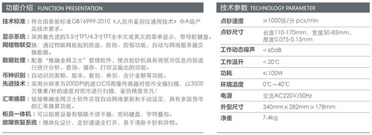 點(diǎn)鈔機(jī)類型: 插電式<br>屏幕數(shù)量: 雙屏<br>級(jí)別: A類<br>顏色分類: 銀黑色<br>支持貨幣:人民幣、美元、歐元、韓元<br>鑒偽方式:12種