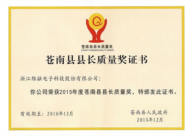 蒼南縣長(zhǎng)質(zhì)量獎(jiǎng)證書(shū)
