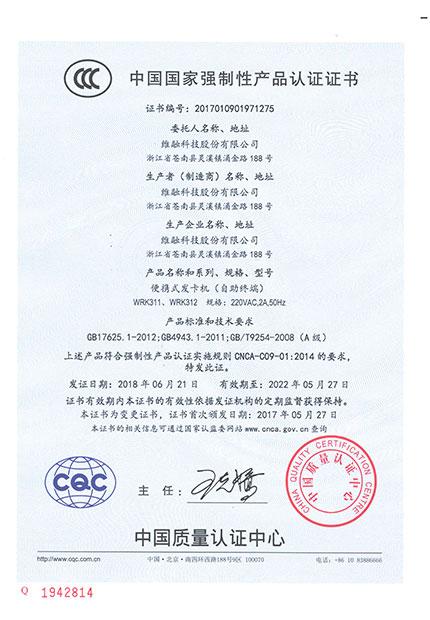 存取款循環(huán)出納機(jī)(WRA612B)CCC證書