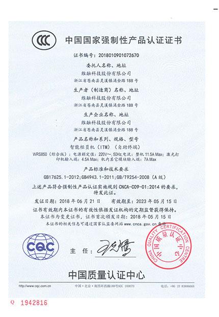 智能柜員機(jī)(ITM)綜合版CCC證書(shū)