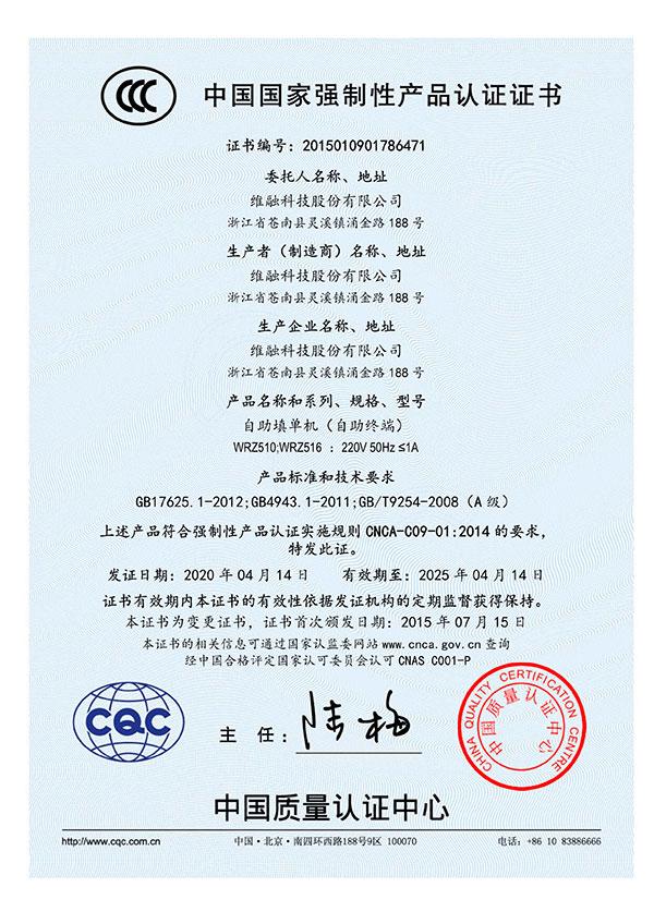 自助填單機CCC證書
