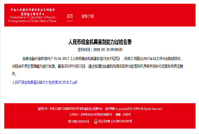 4月24日,中國人民銀行印制科學(xué)技術(shù)研究所鑒別能力檢測中心發(fā)布《人民幣現(xiàn)金機(jī)具鑒別能力過檢名錄》,其中浙江維融電子科技股份有限公司(以下簡稱:維融科技)的四款產(chǎn)品均在名單內(nèi),這充分展現(xiàn)了維融科技在人民幣現(xiàn)金機(jī)具的自主研發(fā)與科技創(chuàng)新的綜合實(shí)力。